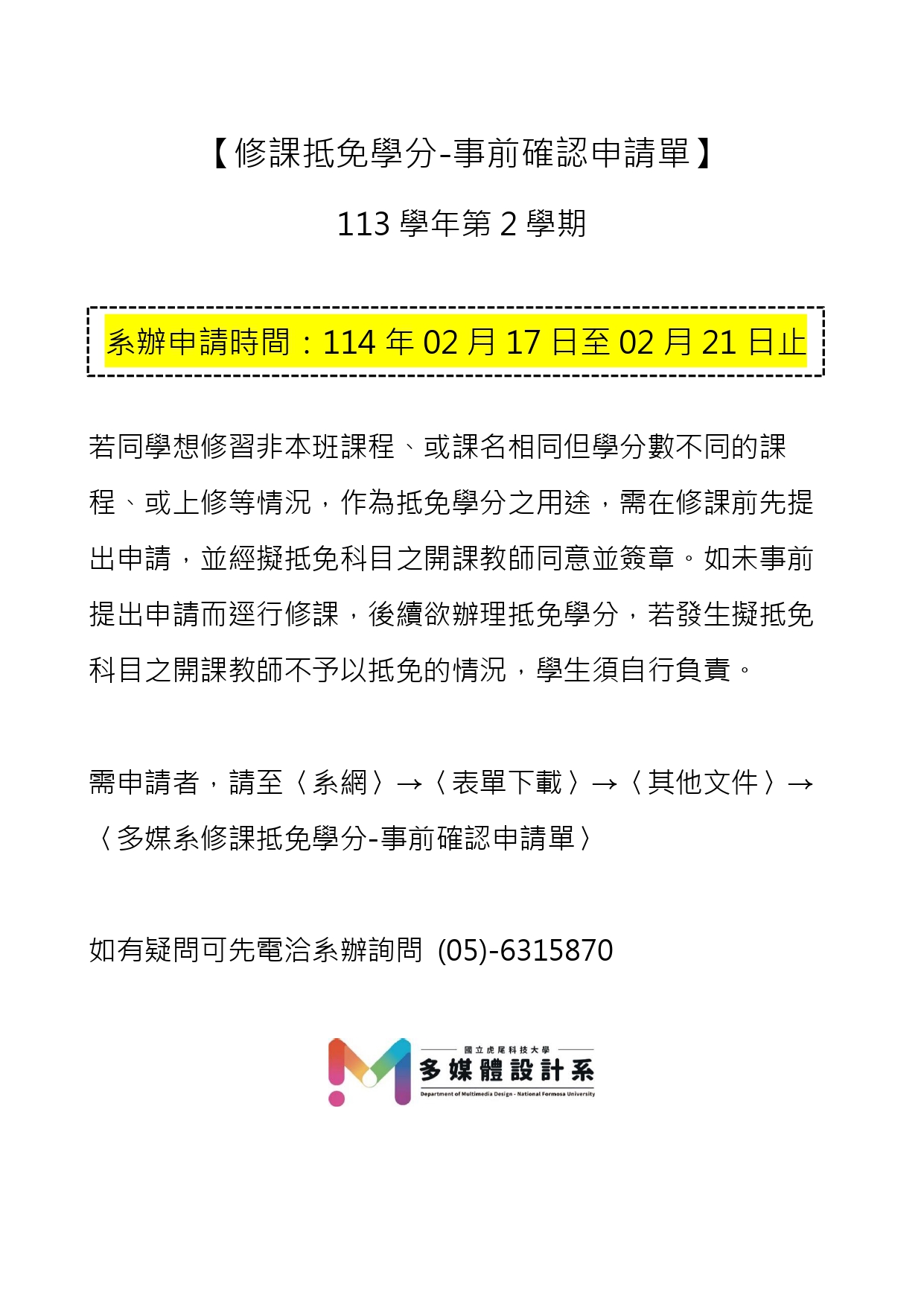 【修課抵免學分-事前確認】申請-113學年第2學期
