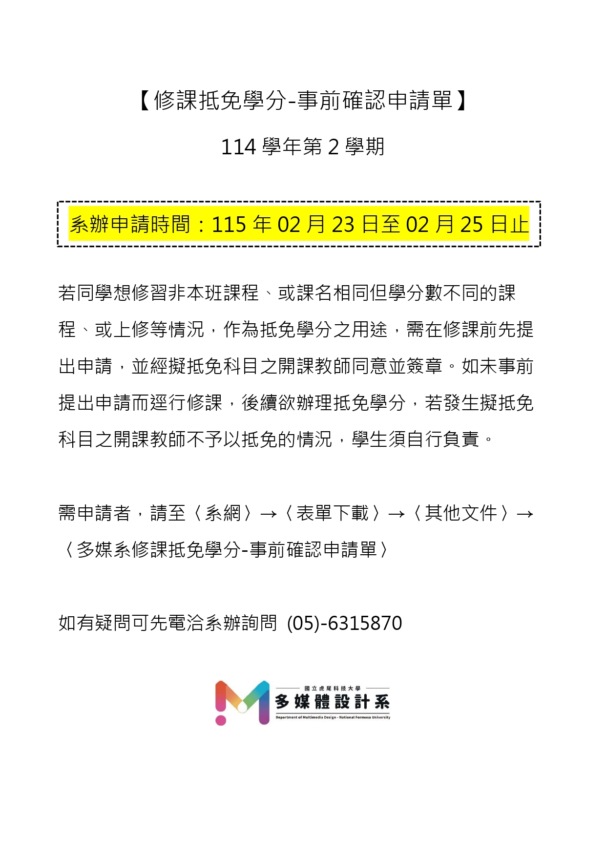 【修課抵免學分-事前確認】申請-114學年第2學期